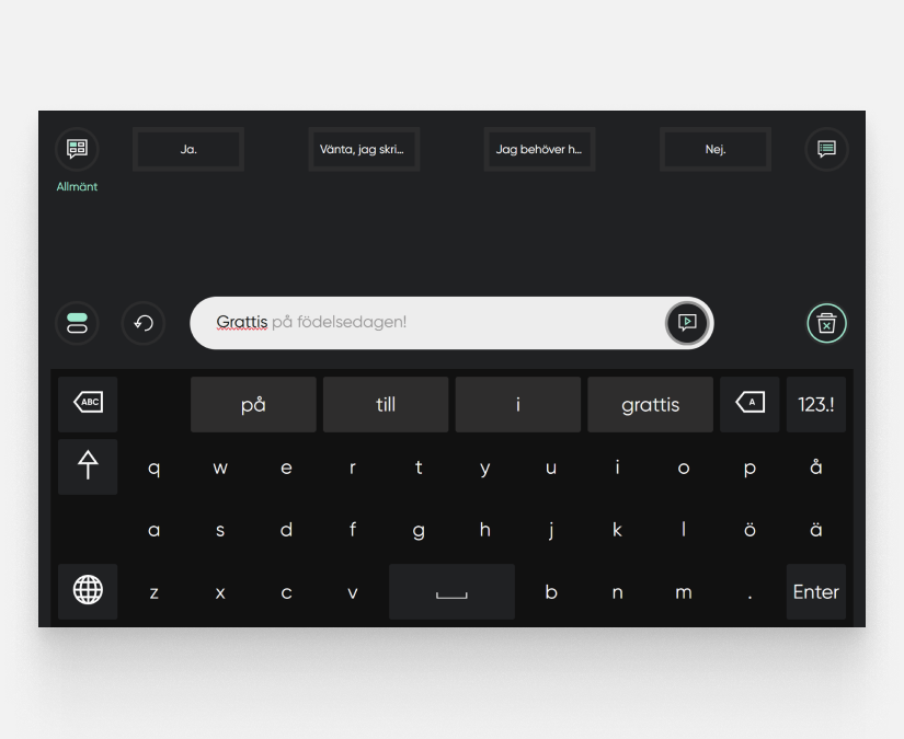 TD Talk är en talgenererande app för läs- och skrivkunniga personer med diagnoser som ALS, multipel skleros, muskulär dystrofi och cerebral pares. TD Talk ger dig möjligheten att tala genom att använda dina fingrar eller ögonstyrning. Välj mellan en mängd röster på olika språk för att hitta den bästa rösten för just dig. Delta aktivt i samtal med hjälp av snabb ord- och frasprediktion och enkel redigering. Kommunicera ansikte mot ansikte genom att göra din skärm transparent med genomskinligt läge som gör ditt skrivna meddelande synligt i baksidans partnerfönster. Du kan också välja en anpassad, syntetisk kloning av din naturliga röst, från flera ledande leverantörer av voice banking.